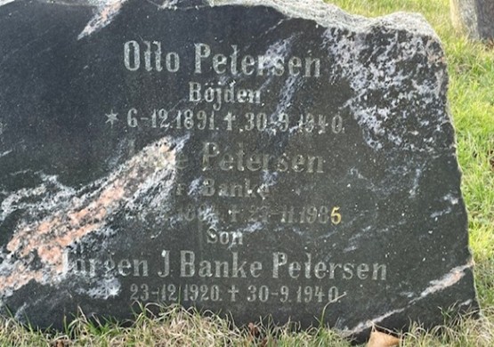 I stedet indsættes et billede af gravstenen på Horne Kirkegård, der giver minder om en anden tragisk hændelse, der indtraf den 30. september 1940 ved Helnæs ud for det sted bænken står. To mænd fra Bøjden: Fisker Otto Petersen og hans søn, Jørgen Banke Petersen på 19 år blev dræbt ved en minesprængning. De fik en mine i fiskegarnet og blev dræbt af eksplosionen. Gravstedet er nedlagt og stenen er fjernet. Stenen overvejes af Horne Kirke at blive knust til genbrugsmaterialer.