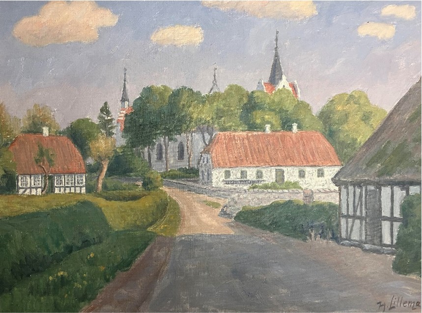 Nedenfor ses et billede af hospital og kirke malet af Hans Lillemark i 1928 og desuden billeder af kirken og mausoleet.