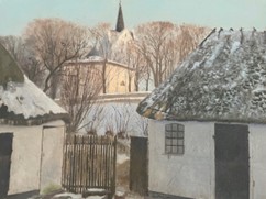 Her fortælles historie om det store røde hus: ”Kaprifoliehuset”. 100 m oppe ad vejen.